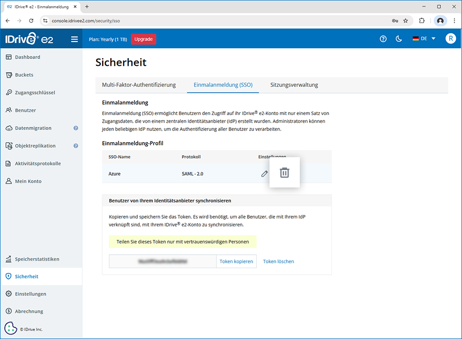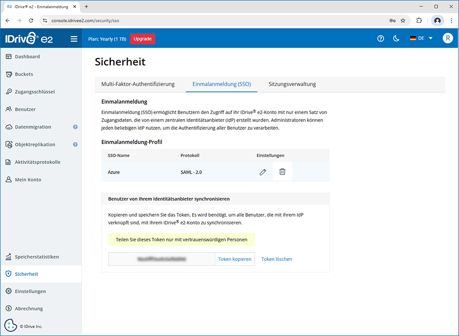 Das Token wird benötigt, um alle mit Ihrem IdP verknüpften Benutzer mit Ihrem IDrive® e2 Konto zu synchronisieren.