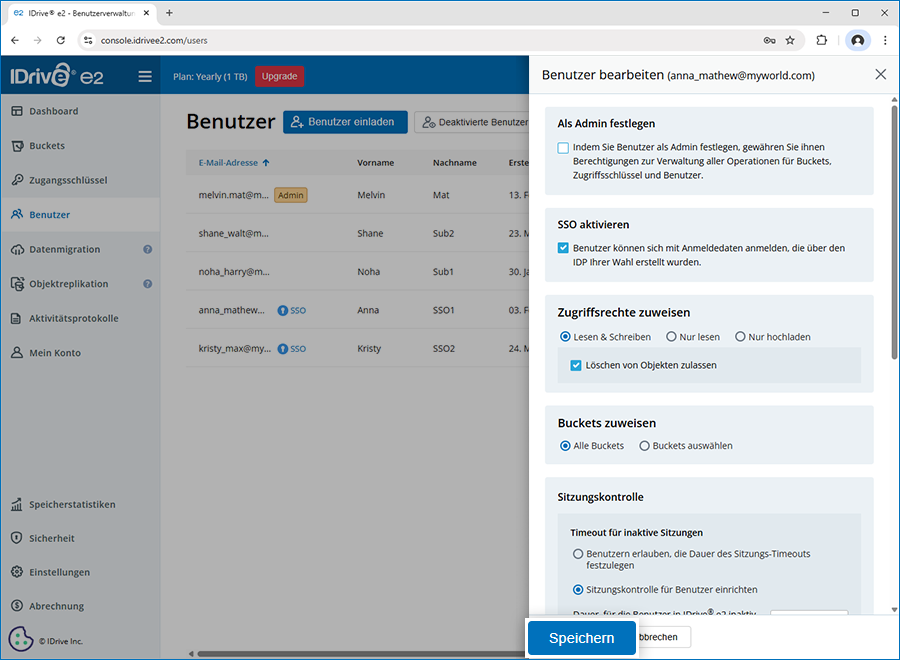 - Melden Sie sich an bei IDrive® e2 und gehen Sie zu 'Benutzer'.
