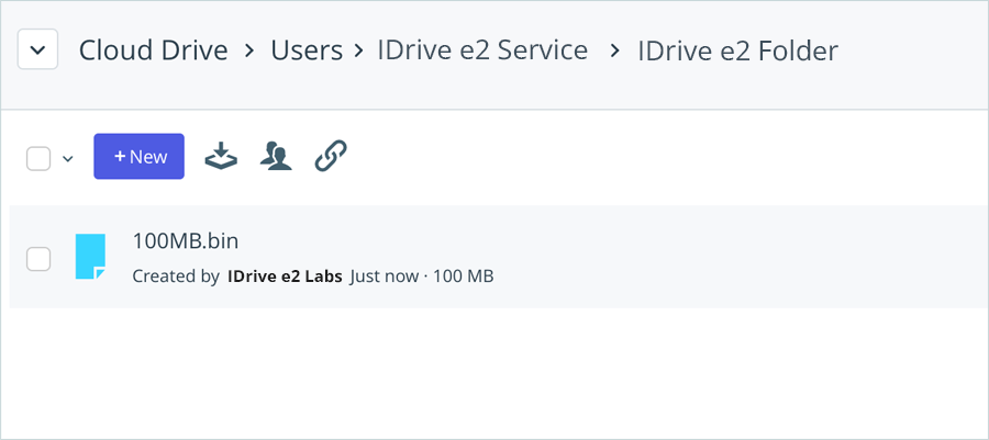 - Click Upload File to select files from your local storage and upload them to IDrive® e2. You can now view the uploaded files in your IDrive® e2 bucket.