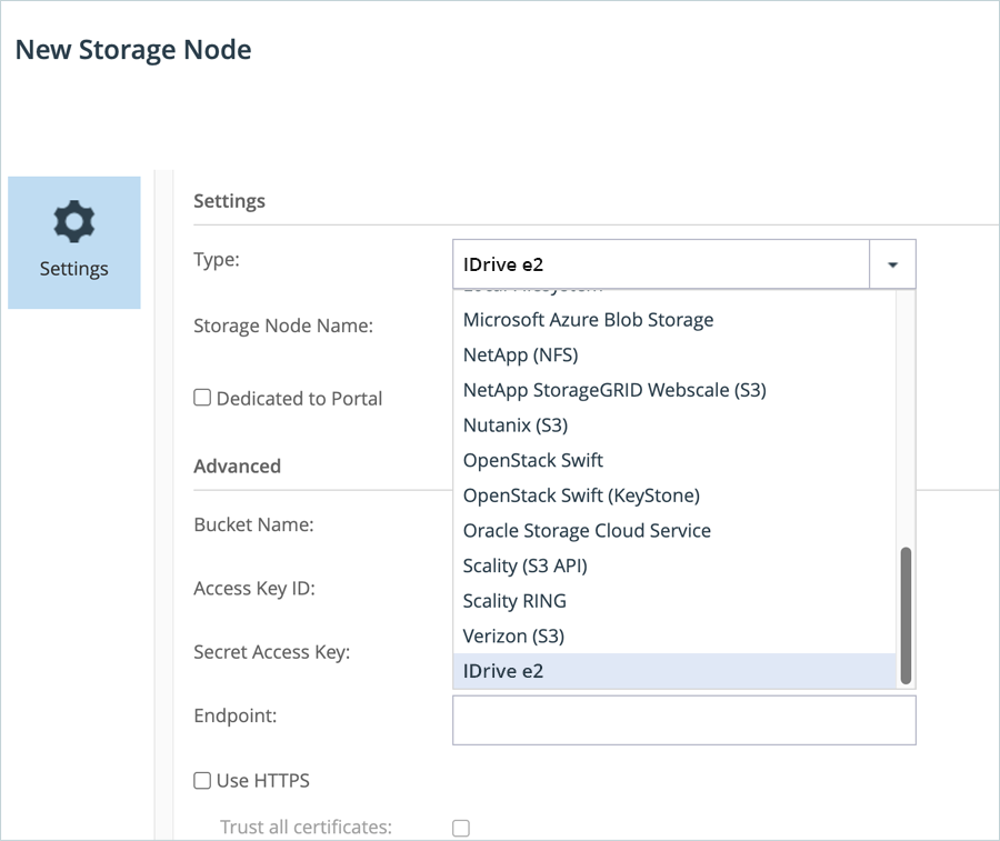 - Enter your IDrive® e2 S3 endpoint as the Endpoint and select the HTTPS checkbox.