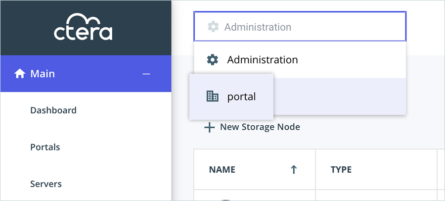 - Log in to the CTERA Portal and confirm that you are in Administrator mode.