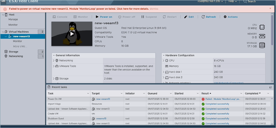 Install Veeam® 13 on a Linux Server in VMWare ESXi