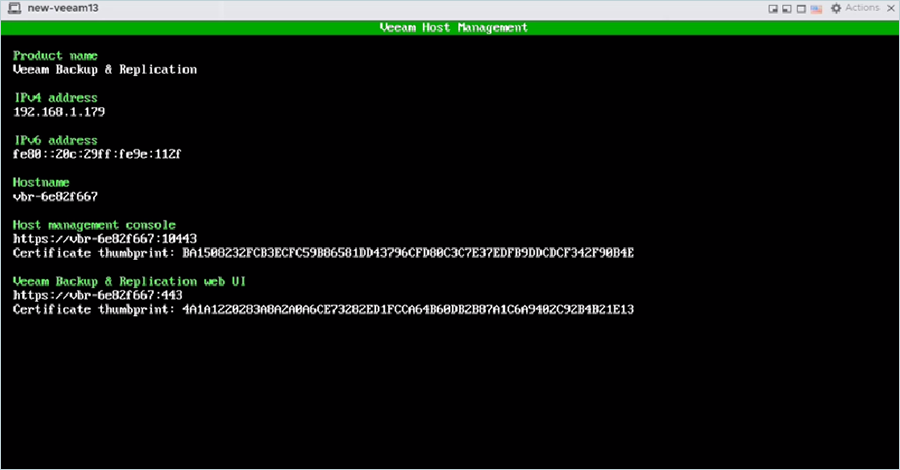 Note: The web consoles of Veeam® Backup, replication console, and Host management console can be accessed via the above link or at https://ip:portnumbers.