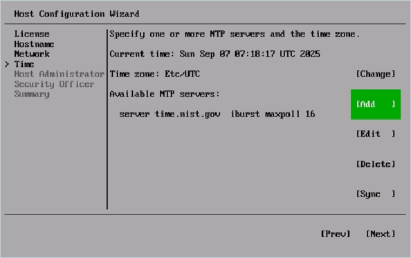 - Click Next and edit the NTP sync server, click Sync, and then click Next.