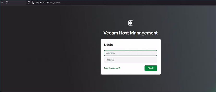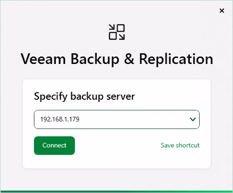 - Upon launching the application, users have to provide the IP of the installed Veeam® Software appliance to get full access through the app UI.
