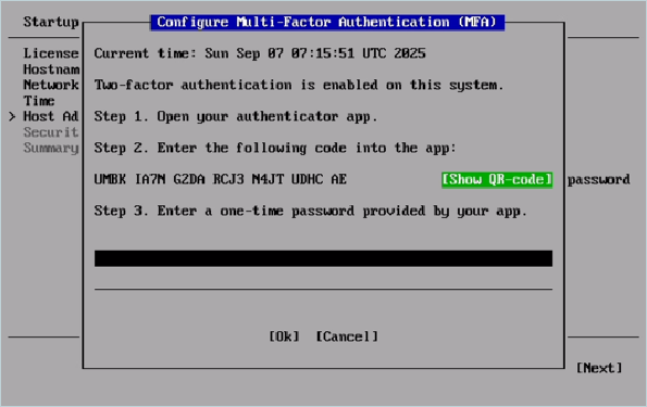 - Upon clicking Next, the Configure Multi-Factor Authentication (MFA) popup appears.