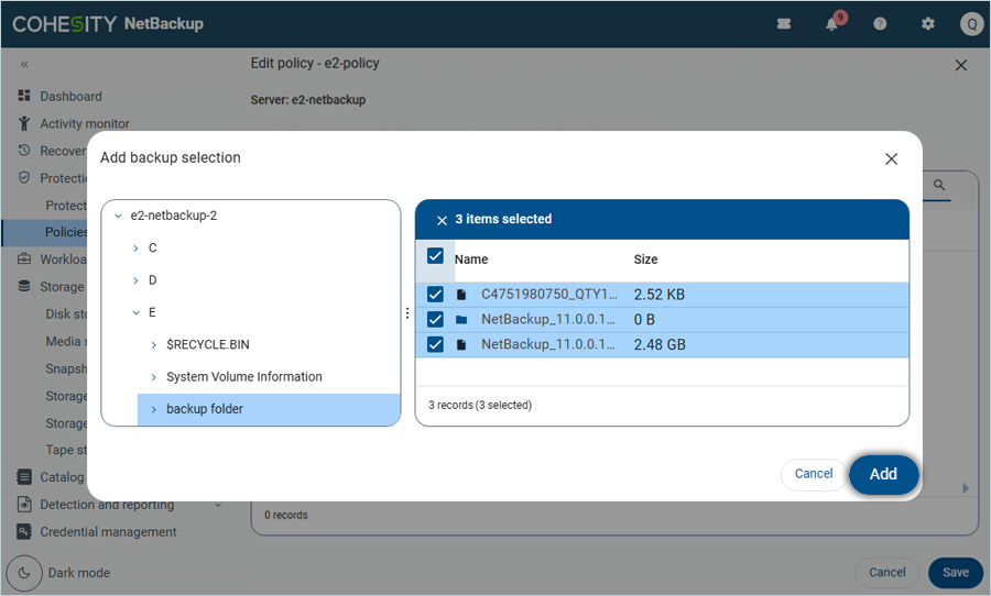 Add Policy and Run Backup