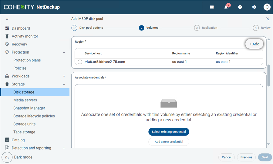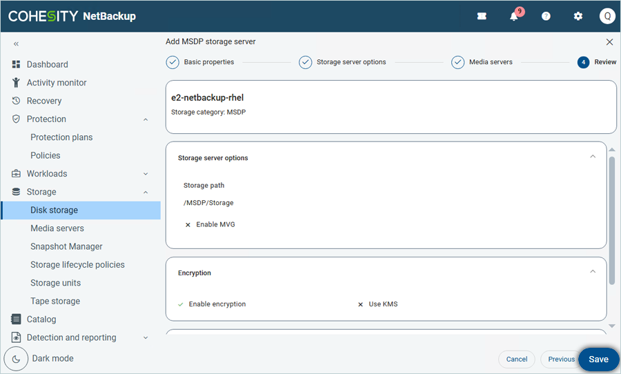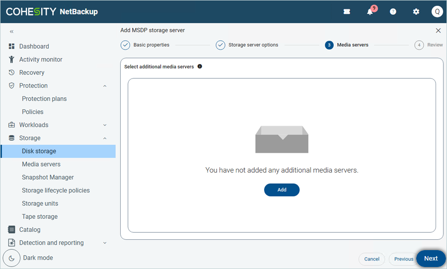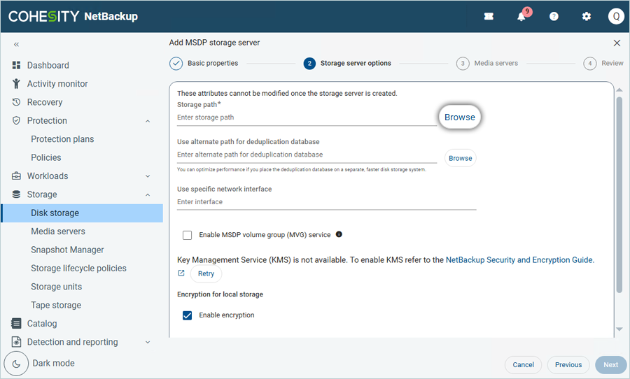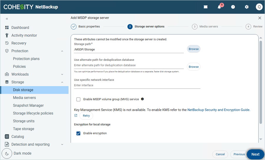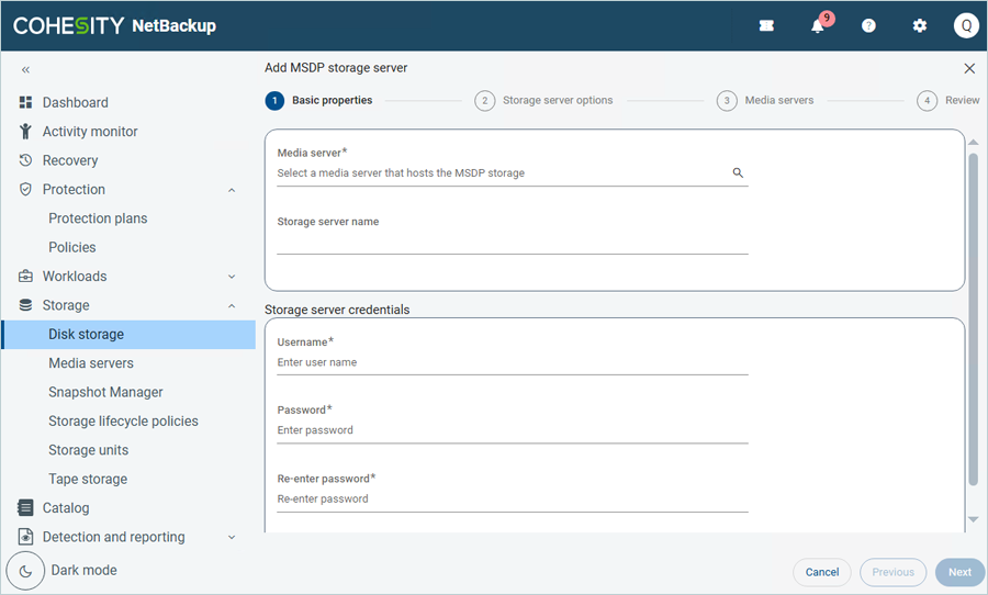 - In the Add MSDP storage server window, under Basic Properties