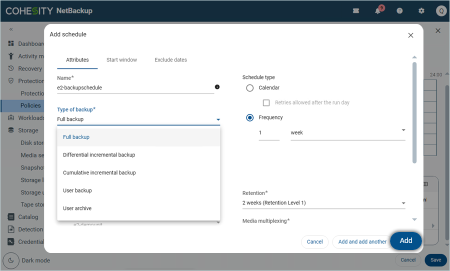 - Click Add to schedule backup.