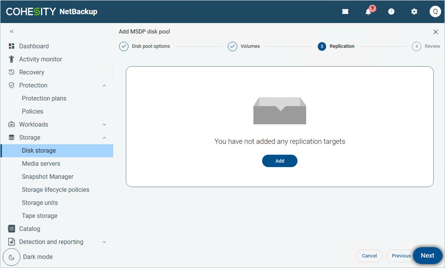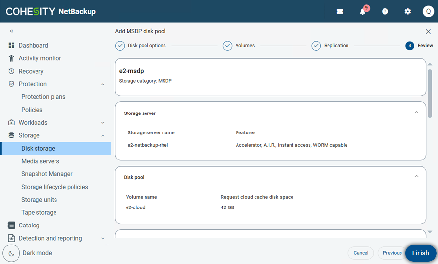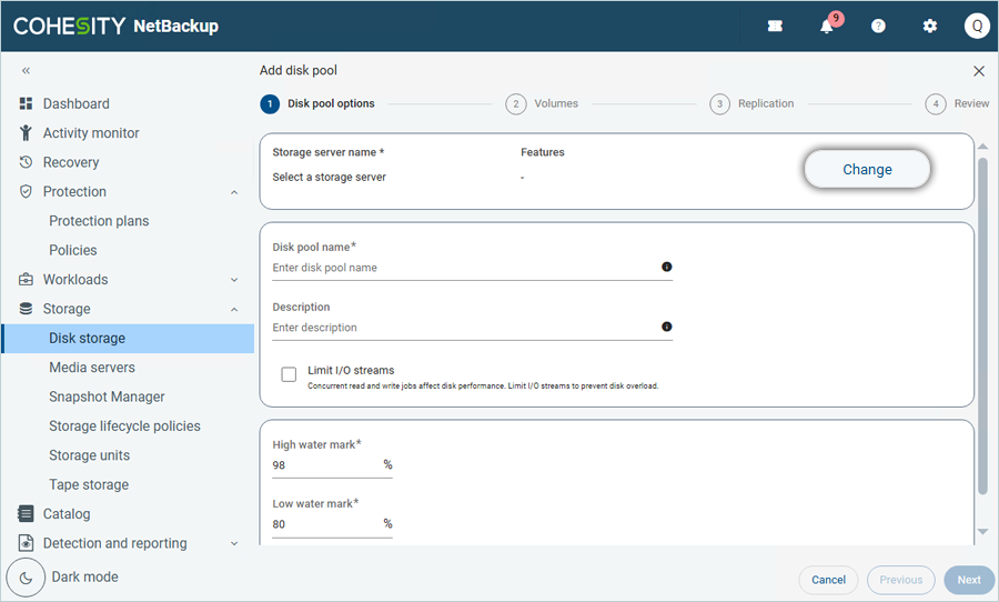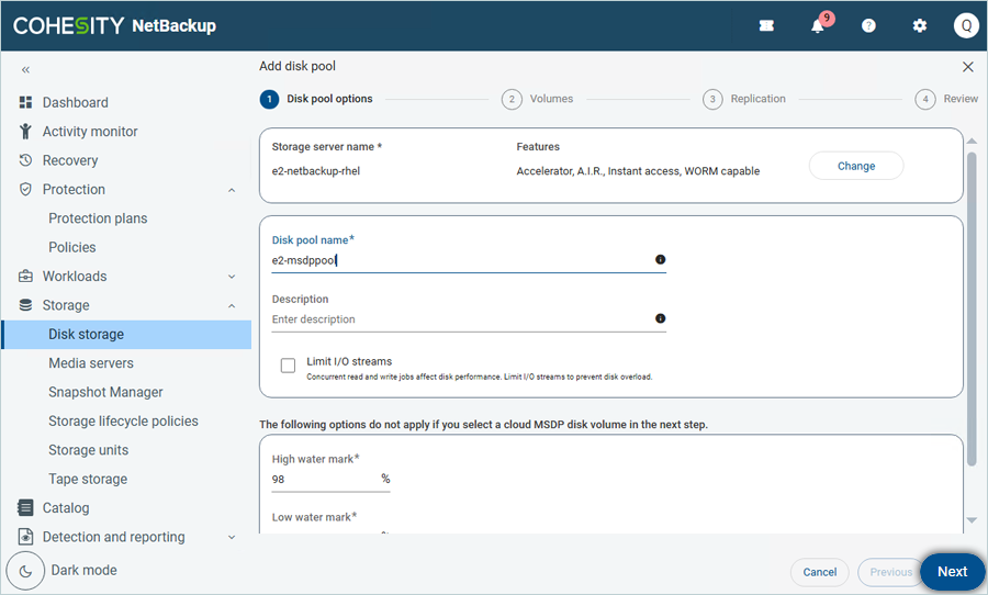 - Enter the Disk pool name and description. Then click Next.