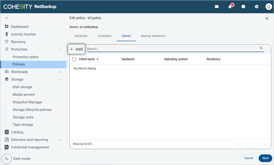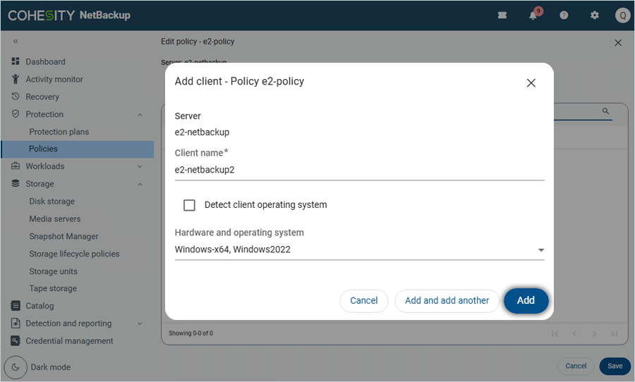 - Click Add to add the NetBackup client.