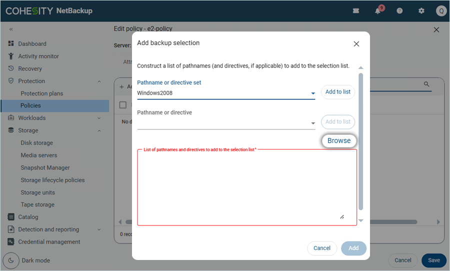 - Select the Pathname or directive set from the list (e.g., Windows2008).