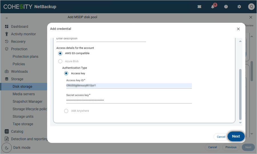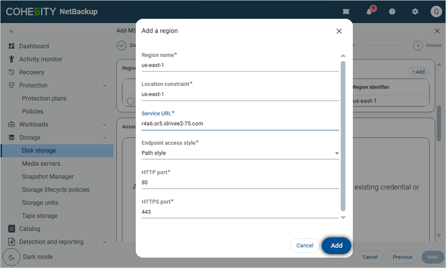 Add IDrive® e2 storage as MSDP Cloud with Media Server