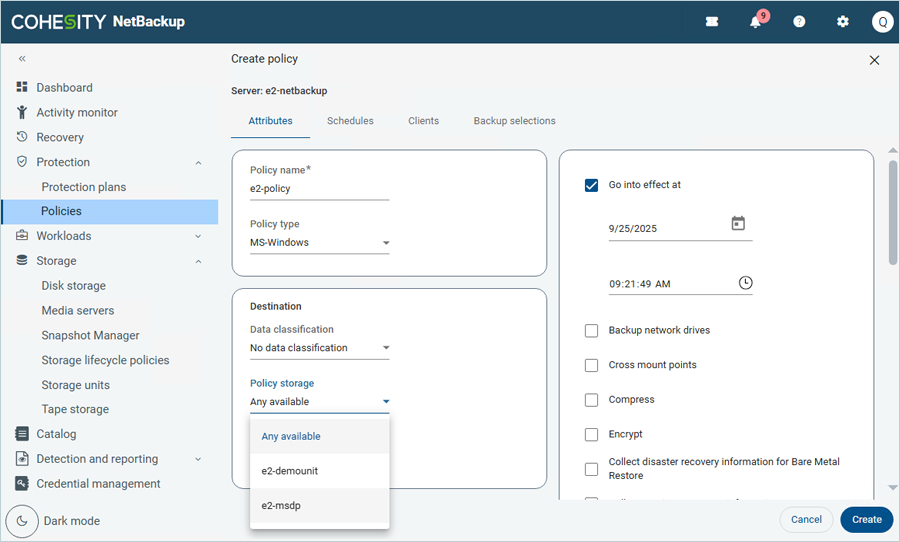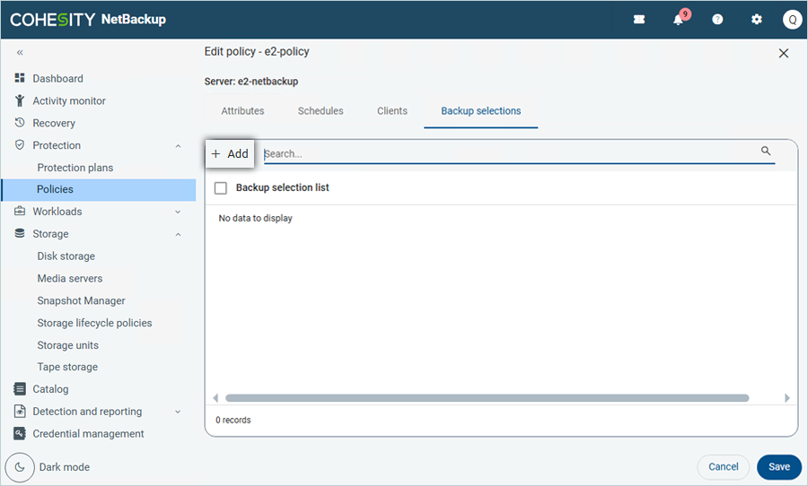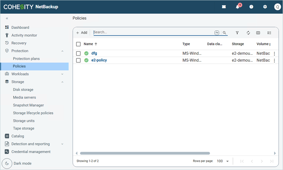 - Click Protection on the left-side menu bar and click Policies.