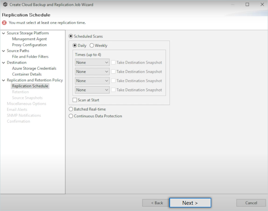 - On the Replication Schedule page, select the frequency of the replication. Click Next to continue.