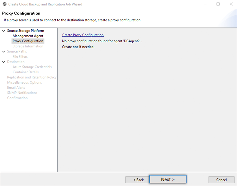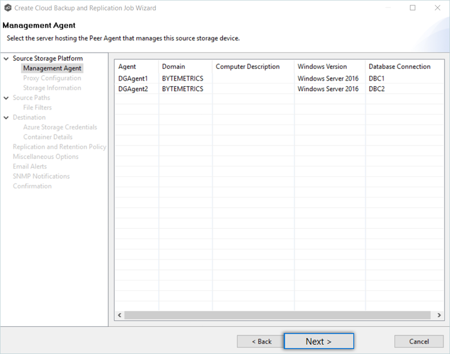 - Select the Management Agent from the list for the volume/share/folder you want replicated and click Next.