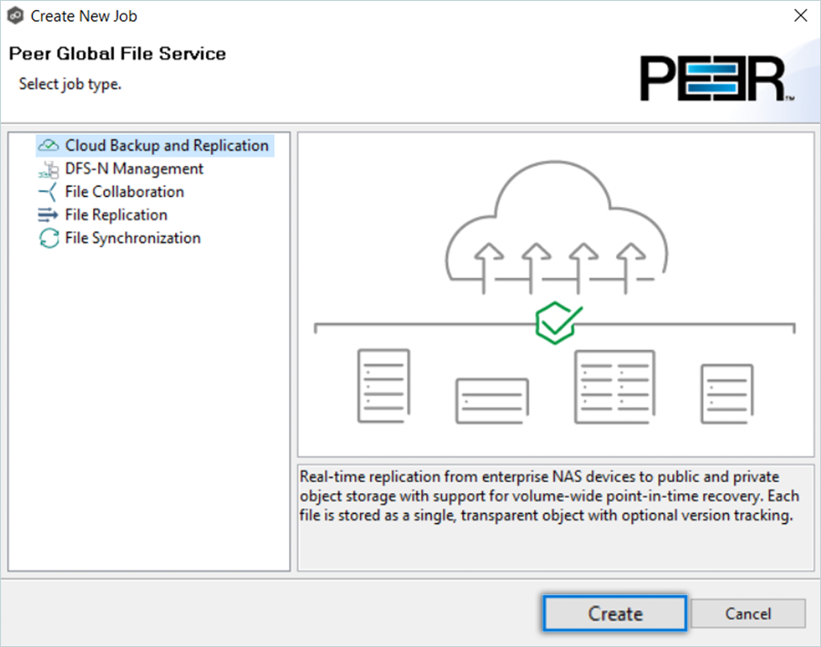 - In the Create New Job window, select Cloud Backup & Replication and then click Create.