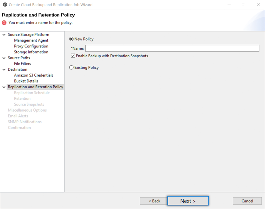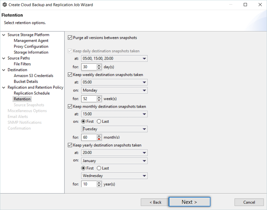 - Select the Enable Backup with Destination Snapshot checkbox.