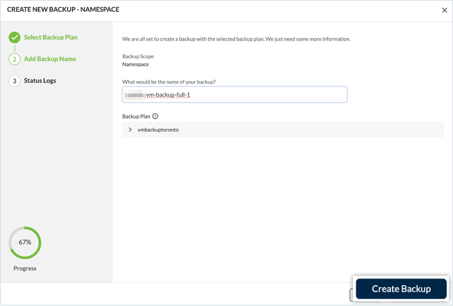 - Enter a name for the backup and select Create Backup.