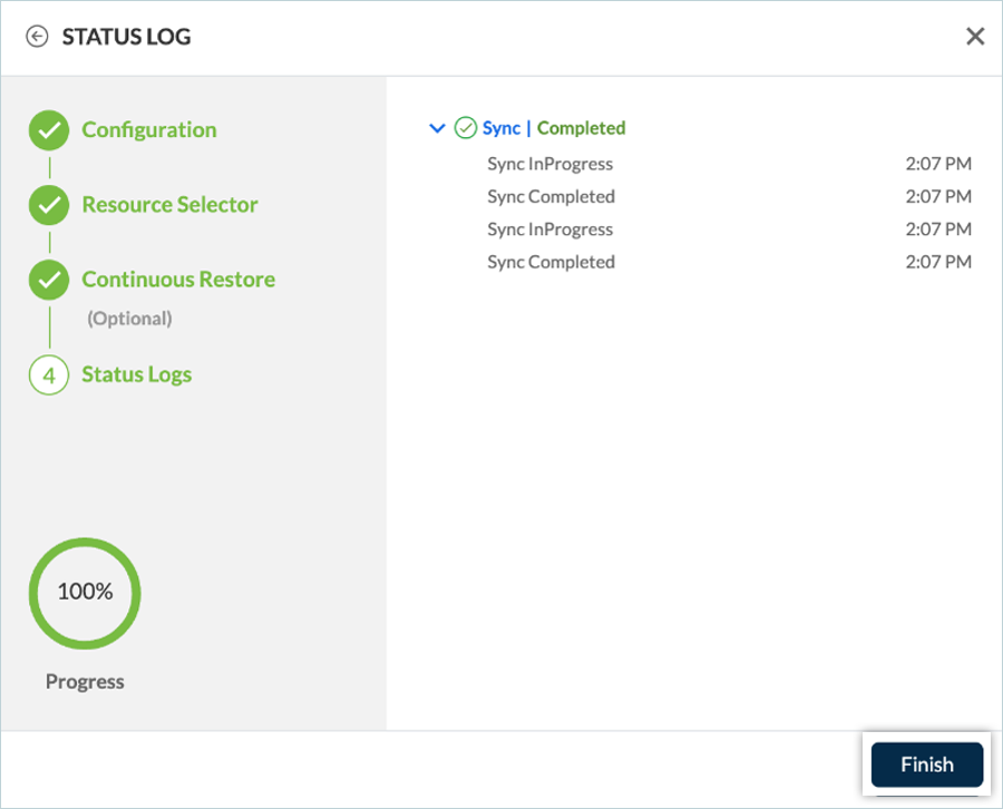 - Once the backup plan is created, click Finish.