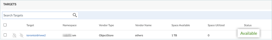 - The IDrive® e2 target status will update to Available.