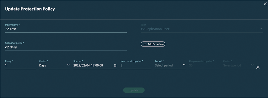 - Provide an appropriate Snapshot Prefix and configure the desired replication schedule, and click Create.