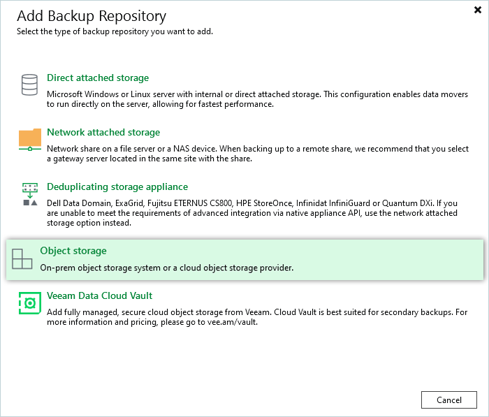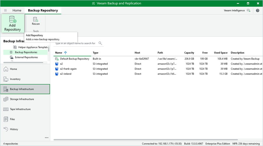 - Navigate to Backup Infrastructure > Backup Repositories and click Add Repository.