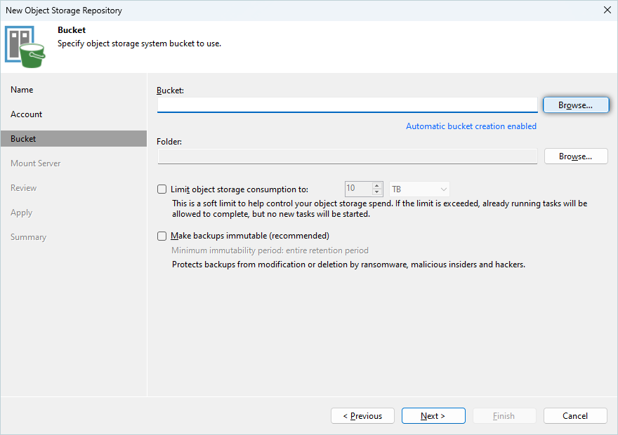Note: Disable Automatic bucket creation enabled by clicking the link and clearing the Create new buckets automatically (recommended) checkbox.