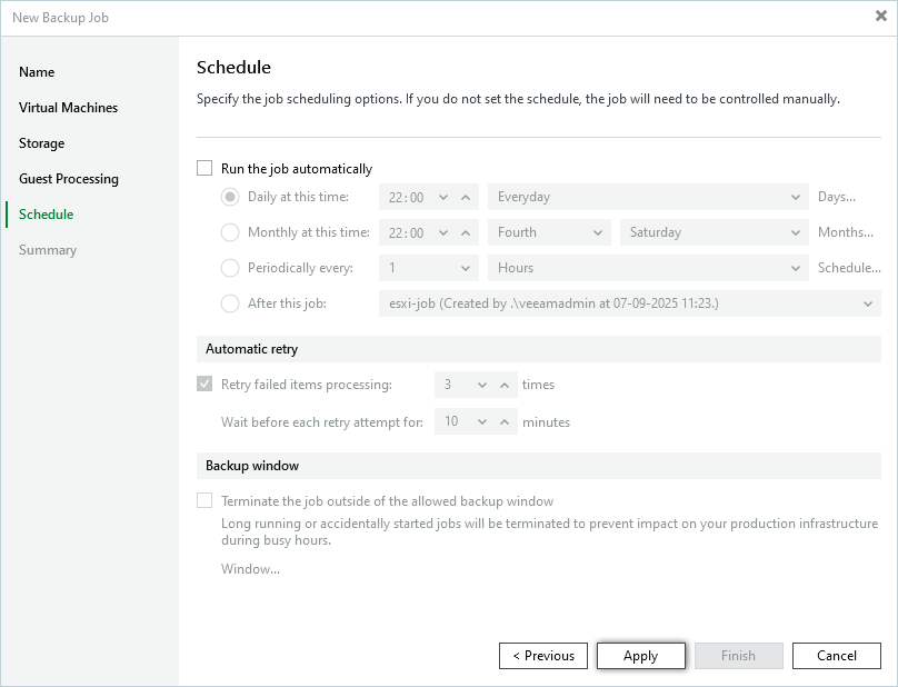- Check the Run the job automatically checkbox and set a schedule. Click Apply.