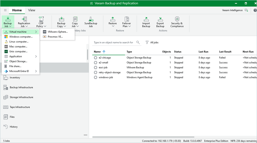 - Navigate to Home > Jobs > Backup Job > Virtual Machine.